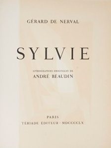 BEAUDIN. NERVAL (Gérard de). Sylvie. Paris, Tériade, 1960. In-4, en feuilles sous couv. rempliée, chemise et étui de l'éditeur (dos de la chemise passé, défauts à l'étui, transfert de certaines planches). Edition illustrée de 34 lithographies originales d'André Beaudin, dont 20 hors-texte. Tirage limité à 200 exemplaires sur vélin d'Arches, signés par l'artiste à la justification : un des 60 de tête comportant une suite des 20 illustrations hors-texte sur japon nacré PROVENANCE Maurice J. Lachard (ex-libris).