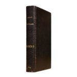 BERTRAND (Louis). Cardénio, l'homme aux rubans couleur de feu. Paris, Librairie Ollendorff, [1922]. In-16, [2] f., 308 p., [2] f., maroquin brun, dos lisse, auteur et titre dorés, date frappée en queue, contreplats bordés de maroquin décoré d'un filet à froid, doublures et gardes de satin moiré beige, deuxième garde de papier peint original, tranches dorées sur témoins, couverture et dos conservés [Huser] (mors et coiffe de queue très légèrement frottés). Édition originale : un des 60 exemplaires sur papier de hollande réimposés in-16 (58 x 80 mm), celui-ci numéroté 8. Exemplaire unique enrichi de six charmantes aquarelles originales hors-texte, signées “Jean-Paul Delhumeau”, qui représentent les principaux personnages du livre en costumes.