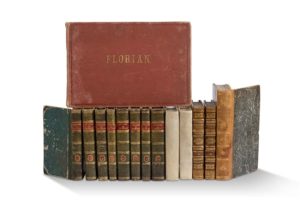 - GUI PATIN. Nouvelles Lettres, Amsterdam, 1718. 2 volumes in-12. Vélin. - CAILLOT. Abrégé de l'histoire générale des voyages, LEDENTU 1826. 2 volumes in-12. - GRANDVILLE Florian traduit par Grandville. Autour de la table. Paris, Polain vers 1850. in-8 Oblong usagé - FLORIAN. OEuvres. LEIPSIC 1796. 8 volumes in-12. Demi maroquin - MONTJOIE. Eloges historiques de Louis XVI. Imprimerie royale 1797. in-8 Demi basane XIXe. Tache