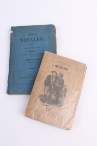 GUICHON (De Grandpont de) GLORIÆ NAVALES. 1 vol. gd in-12 broché. Brest Lefournier 1853 (Edition Originale). Avec 26 planches de fac-similés reproduisant 214 signatures autographes de marins français du XVIIè au XIXè siècle. E.A.S. de l’auteur au Dr Hebert, président de la Sté Académique de Brest. Rare. Il est joint : PLUCHONNEAU / MAILLARD PHYSIOLOGIE DU MARIN dédiée à la Marine française. 1 vol. in-16 broché, couverture illustrée. Paris Pilout / Ledoyen 1843. Illustrations de Charles Delhomme. Premier plat à moitié désolidarisé. Soit 2 vol.