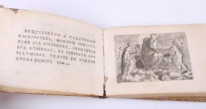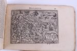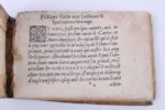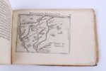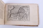 ORTELIUS (Abraham) [1527-1598] EPITOME DU THEÂTRE DU MONDE auquel se représente, tant par figures que caractère, la vraie situation, nature et propriété de la terre universelle. 1 vol. in-12 oblong relié plein vélin ancien remplié époque. Anvers Plantin pour Philippe Galle 1588 ou 1590. L’ouvrage contient 88 cartes (sur 94) de très nombreux pays, régions et villes. Celles-ci sont accompagnées d’un texte explicatif en vis-à-vis de chaque carte; Format de chaque carte 8x11 cm. Manque la page de titre, gouttière ouverte, quels mouillures en marge, manque de vélin au centre du deuxième plat. Troisième ou quatrième édition en français du célèbre petit atlas de poche. La première édition de 1579 ne comptait que 72 cartes et la deuxième (1583) 83 cartes. Réf : Sabin XIV - n° 57688