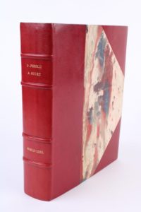 BOUHET (Alexandre) BREIZ IZEL ou Vie des Bretons dans l’Armorique. 1 fort vol. pt in-4 relié 1/2 chagrin rouge à coins, dos à nerfs, couverture & dos conservés. Quimper Salaün / Paris Champion / Brest Derrien 1918 (Nlle éd. avec une préface et des notes de Frédéric Le Guyader). Avec 120 dessins d’Olivier PERRIN. Quelques rousseurs éparses, sinon très bel ex.