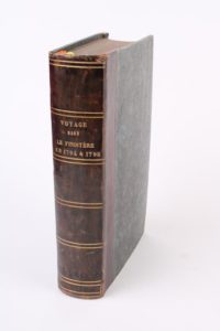 CAMBRY VOYAGE DANS LE FINISTERE ou état de ce département en 1794 et 1795. 3 tomes en 1 vol. pt in-8 reliés 1/2 basane bordeaux, dos lisse à liserés dorés. Paris Cercle Social An VII (1799) (Edition Originale) Avec 8 planches gravées dont 3 en frontispice, 1 tableau et 1 carte dépliante. Accroc en pied d’un mors, traces de vers en marge centrale, restauration basique pp. 95 & 96 au vol. 2 sans conséquence, sinon bel ex. Réf : Sacher pp. 32 - Kerviler IV - pp. 350 - Quérard II - pp. 29 « C’est le premier ouvrage de statistique qui ait paru en France »