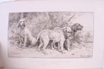 Tirage unique à 150 ex. Hors-Commerce, d’un recueil retraçant les chasses à courre du loup en Bretagne. Avec 2 planches hors-texte dont 1 frontispice en héliogravure « la meute du baron » et un tirage en sanguine de la vignette de la première de couverture. Couverture salie et détachée. Bon état intérieur.