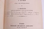 LE BRAZ (Anatole) LA LEGENDE DE LA MORT EN BASSE-BRETAGNE - croyances, traditions et usages des bretons armoricains. 1 très fort vol. pt in-8 relié 1/2 maroquin bleu à grain long, dos à nerfs, couverture conservée. Paris Champion 1893 (Edition Originale). Très bel ex. Vaste recueil de récits, de traditions et de croyances populaires autour de la mort, collectés auprès des populations bretonnes. Une 2ème édition a été publiée en 1903 en 2 vol. sous le titre « Légende de la mort chez les Bretons armoricains ». Très rare E.O.