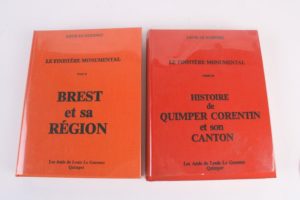 LE GUENNEC (Louis) HISTOIRE DE QUIMPER CORENTIN ET SON CANTON. 1 vol. gd in-8 relié pleine toile rouge sous rhodoïd. Quimper Assoc. Amis Le Guennec 1984. Il est joint : du même BREST ET SA REGION. 1 vol. gd in-8 relié pleine toile orangée sous rhodoïd. Quimper Assoc. Amis Le Guennec 1981. Soit 2 vol. Très beaux ex.