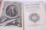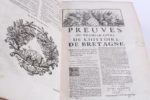 LOBINEAU (Gui Alexis) HISTOIRE DE BRETAGNE. 2 vol. in-folio reliés 1/2 veau, dos à nerfs à caissons fleuris, plats craquelés, tranches rouges. Paris Clousier 1707 (Edition Originale). Avec 43 planches dont 22 de sceaux. Frontispice du portrait de Louis Alexandre de Bourbon, Comte de Toulouse. A Monsieur Harauchipy du Chesne, avocat et notaire sénéchal duparc en Braspart. Mors frottés, mq pp. 79-80 & 621-622. Restauration pp. 675 à 678 et restauration sommaire pp. 42 & 508. Beaux ex.