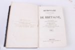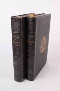 OGEE DICTIONNAIRE HISTORIQUE ET GEOGRAPHIQUE DE LA PROVINCE DE BRETAGNE. 2 vol. gd in-8 reliés 1/2 chagrin, plats de percaline aux armoiries de la Bretagne, dos à nerfs. Rennes Molliex 1843-1853 (Nlle éd. revue & augmentée par Marteville et Varin). Beaux ex. Réf : Sacher pp. 156-157 « cette nouvelle édition est de beaucoup préférable à l’ancienne »