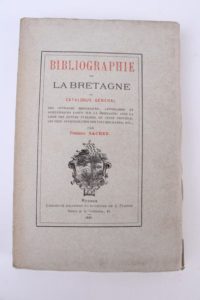 SACHER (Frédéric) BIBLIOGRAPHIE DE LA BRETAGNE. 1 vol. in-8 broché. Rennes Plihon 1881. Bel ex. …
