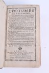 SAUVAGEAU (Michel) COUTUMES DE BRETAGNE. 1 vol. in-16 relié plein veau époque, dos à nerfs à caissons fleuris, tranches rouges. Rennes Vatar 1742. Dos & mors en partie et coiffes entièrement restaurées. Intérieur très frais.