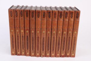 CHATEAUBRIAND Itinéraire de Paris à Jérusalem (3 vol.) Les Martyrs (3 vol.) Génie du christianisme (4 vol.) Les Natchez (2 vol.) Atala-René-Dernier abensérage (1 vol.) 13 vol. in-8 reliés ½ basane rouge à coins, dos lisse à ornementation roman-tique. Paris Lefèvre et Ladvocat 1829 et (1830 pour Atala) Rousseurs éparse, sinon très bel ensemble.