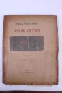 [MONTALD] VERHAEREN (Emile) Le cloitre. Avec 7 hors-texte et 7 bandeaux de Constant Montald. 1 vol. in-folio broché, couverture illustrée rempliée. Paris La Connaissance 1920. Tiré seulement à 125 ex. numérotés, celui-ci 1 des 113 sur Arches (n° 15). Couverture tachée. Intérieur très frais. Réf : Monod II – n° 11027