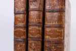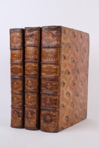 CHAPPE D’AUTEROCHE (Abbé Jean) Voyage en Sibérie fait par ordre du roi en 1761, contenant les mœurs, les usages des Russes, et leur état actuel ; la description géographique et le nivellement de la route de Paris à Tobolsk ; l’histoire naturelle de la même route ; des observations astronomiques & des expériences sur l’électricité naturelle : enrichi de cartes géographiques, de plans, de profils du terrein (sic) ; de gravures qui représentent les usages des Russes, leurs mœurs, leurs habillements, les divinités des Calmouks, et plusieurs morceaux d’histoire naturelle. 2 tomes en 3 vol. gd in-4 reliés plein veau marbré époque, dos à nerfs à caissons fleuris, triple filet d’encadrement sur les plats, tranches bleutées. Paris Debure père 1768 (Edition Originale). Sans l’atlas. L’ouvrage contient 56 planches [28+20+8] dont certaines doubles par J.-B. Leprince, vignettes de Moreau, Martinet et Caresme. Les planches représentent pour l’essentiel, des vues, des scènes de mœurs, des costumes et des animaux ainsi qu’un tableau dépliant des températures enregistrées durant la période des grands froids. Ex-libris Goldschmidt-Rothschild (Maximilien von) banquier allemand [1843-1940]. Le voyage entrepris par Chappe d’Auteroche [1728-1769] était consacré à des observations astronomiques et à la recherche des minéraux. Ce qui ne l’empêcha pas de dénoncer l’avilissement de l’homme en esclave « une denrée du commerce » dans cette seconde partie du XIXè siècle en Russie. Ce propos provoqua la colère de l’impératrice Catherine II qui répliqua à Chappe par une brochure intitulée « Antidote ou Réfutation du mauvais livre superbement imprimé intitulé : Voyage en Sibérie etc », laquelle reprend point par point les critiques de l’abbé. Cet ouvrage a été publié anonymement par l’impératrice et le Comte Chouwaloff [1ère édition éditée à Saint-Pétersbourg]. Réf : Quérard II - pp. 129. - Rahir pp. 364. Réf : Brunet I - pp. 1798 « Cet ouvrage a été vivement critiqué par ordre de Catherine II ; mais il n’est pas aussi mauvais qu’on a voulu le faire croire » Réf : Boucher de La Richarderie V - pp. 447 à 450 « Cet atlas est devenu rare, parce que les cuivres ont été volés à M. De Bure il y a plusieurs années »