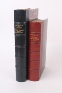 TERREBASSE (Alfred de) HISTOIRE DE PIERRE TERRAIL, SEIGNEUR DE BAYART. 1 vol. gd in-8 relié 1/2 maroquin bleu, dos à nerfs, tête dorée. Vienne Savigné 1870. Ex-libris. Très bel ex. grand de marges. Il est joint : FOE (Daniel de) ETRANGES AVENTURES DE ROBINSON CRUSOË. Frontispice et 7 planches de Jules Fesquet. 1 vol. in-8 relié 1/2 maroquin rouge, dos à nerfs (insolé). Paris Bonnassies 1877. Ex-libris. Très bel ex. Soit 2 vol.