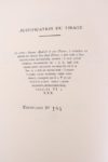AUBERT (O.-L.) JEANNE MALIVEL, SON ŒUVRE ET LES SEPT FRERES. Préface de Maurice Denis. 1 vol. in-4 broché, couverture illustrée. St Brieuc Aubert 1929 (Edition Originale). Tiré à 300 ex. numérotés, celui-ci 1 des 295 sur simili-Japon Dujardin (n° 194). E.A.S. de Albert Malivel, père de Jeanne Malivel à Son Excellence Monseigneur Serrand, évêque de St Brieuc & Tréguier, Loudéac 20 avril 1932. Ouvrage de plus de 170 illustrations de Jeanne Malivel mise en couleurs par Jean Saudé représentant : les projets de pièce d’ameublements, de fresques et décors, de vitraux et tentures, de faïences et verreries, de lingerie, de broderie et de rubans, et de bois gravés. Quelques ressauts de cahiers, petits accrocs en tête & queue d’un mors, légères brunissures sur la tranche sup. sinon bel ex. à l’intérieur très frais.