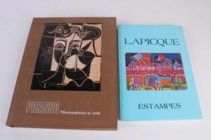 LEYMARIE (Jean) PICASSO - METAMORPHOSES ET UNITE. 1 vol. gd in-folio relié pleine toile, premier plat illustré par Picasso. Genève Skira 1971. Très nombreuses illustrations n. & coul. in & ht. Très bel ex. Il est joint : Catalogue de Charles LAPICQUE. Ensemble de l’œuvre gravé (lithographies - eaux-fortes - gravures). Contient 509 illustrations n. & coul. 1 vol. gd in-4 cartonnage bleu en couleurs. Catalogue de vente de l’étude Blache à Versailles (20 décembre 1981). Très bel ex. Soit 2 vol.