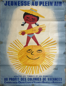 MORVAN Hervé (1917-1980) — « Jeunesse au plein air », affiche de la Confédération des œuvres Laïques de Vacances d'Enfants et d'Adolescents faisant la promotion de l'achat de timbres et de vignettes au profit des colonies de vacances, 1963.