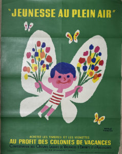 MORVAN Hervé (1917-1980) — « Jeunesse au plein air », affiche de la Confédération des oeuvres Laïques de Vacances d'Enfants et d'Adolescents faisant la promotion de l'achat de timbres et de vignettes au profit des colonies de vacances, 1965.