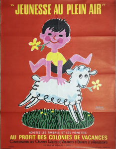 MORVAN Hervé (1917-1980) — « Jeunesse au plein air », affiche de la Confédération des oeuvres Laïques de Vacances d'Enfants et d'Adolescents faisant la promotion de l'achat de timbres et de vignettes au profit des colonies de vacances, 1966.