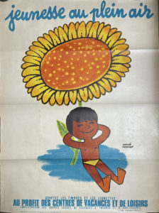 MORVAN Hervé (1917-1980) — « Jeunesse au plein air », affiche de la Confédération des oeuvres Laïques de Vacances d'Enfants et d'Adolescents faisant la promotion de l'achat de timbres et de vignettes au profit des colonies de vacances, 1976.