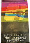 - Affiche de promotion des bons SNCF de l'année 1973 offrant des lots-kilomètres et des intérêts, d'après Eric. Yves Alexandre, imp. GLF. SNCF 1973, n° 19.