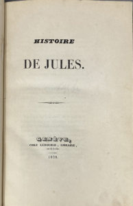 [TÖPFFER]. — Histoire de Jules. Genève, Ledouble, 1838. — In-8, bradel demi-toile brique (Reliure moderne).
