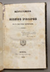 [TÖPFFER]. — Réflexions et menus propos d'un peintre genevois. - Ibid. — Deuxième opuscule. — Genève, chez tous les libraires, 1830-1831. — 2 ouvrages en un volume in-12, demi-basane brune, dos lisse orné (Reliure de l'époque).