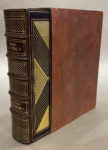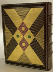 Reliure de René Kieffer, ornée d'une plaque spéciale et de deux gravures tirées sur satin en doublure.
