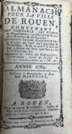 On joint : Almanach de la ville de Rouen. Rouen, Veuve Machuel, 1789. In-18,maroquin rouge, décor de gros fers divers avec au centre une grande fleur, tranches dorées (Reliure de l’époque).