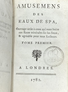 PÖELLNITZ (Karl-Ludwig, von).Amusemens des eaux de Spa. Ouvrage utile à ceux qui vont boire ces eaux minérales sur les lieux, et agréable pour tous lecteurs.Londres, 1782. Tome premier (sur cinq).