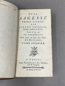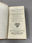 CHARRON, Pierre. — De la sagesse [..] pour servir de suite aux essais de Montagne. Herissant fils, libraire rue St Jacques, 1788, in-12° plein veau de l'ép. — Deux volumes.