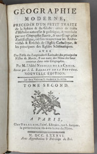 LACROIX, Louis Antoine Nicolle de (Abbé). - Géographie moderne... Revue par J. L. Barbeau de La Bruyère. Nouvelle édition... - A Paris, chez Delalain, 1786 - 2 volumes petit in-8, basane havane marbrée, dos à nerfs ornés de filets, motifs et...