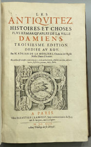 Adrian de la MORLIERE. — Le premier livre des antiquitez, Histoires et choses plus remarquables de la ville d'Amiens. — 3ème édition, 1642, Sebastien Cramoisy imp.