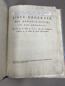 LISTE GÉNÉRALE DES DÉNONCIATEURS ET DES DÉNONCÉS, tant de la ville de Lyon que des Communes voisines et de celles de divers départemens. — A Lausanne, De l'Imprimerie de la Société Typographique, 1795, in-4