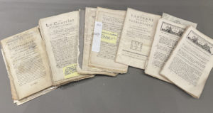 Bulletin des lois de la République (numéros 200, 206, 215, 216, 217 et 223), Le courrier des départements (numéros 2, 3, 4, 5, 6, 7, 16 et 19), Correspondance nationnale, L'Ami du peuple ou le publiciste parisien (numéros 112, 530, 535 et 526) et divers