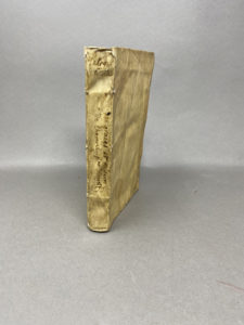 ULLOA Alphonse, Dialogue des Graces et excellences de l'Homme, et de ses misères et disgraces ; à Paris, chez François Gueffier, trauction de Jérome d'Avost, 1583. — In-8, vélin à recouvrement, traces d'attaches.