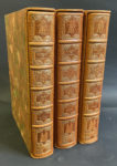 Exemplaire n° 312 sur Vélin d'Arches, avec double-planche en couleurs encadrée et suite en violet de Bourgogne des illustrations hors-texte. Reliure d'éditeur ornée de décors à froid et dorés. Emboîtages en papier marbré.