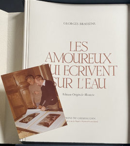 Ouvrage tiré à 300 exemplaires numérotés ; celui-ci porte la mention EA et est signé par Brassens et Cadiou.