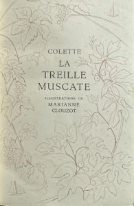 COLETTE, illustrations de CLOUZOT Marianne. — La Treille muscate, 1 vol., relié, textes de Colette illustrés de dessins de Marianne Clouzot. — Tirage limité à 575 exemplaires, celui-porte le n° 510 sur vélin de Rives.