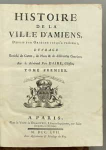Révérand Père DAIRE — Histoire de la ville d'Amiens, depuis son origine jusqu'à présent, ouvrage enrichi de cartes, de plans & de différentes gravures, 2 vol.