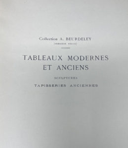 CATALOGUE DE LA VENTE de la Collection A. Beurdeley (première partie) comprenant les tableaux modernes, tableaux anciens, sculptures et tapisseries anciennes, ayant eu lieu le 6 et 7 mai 1920 à la Galerie Georges Petit, imprimerie Georges Petit....