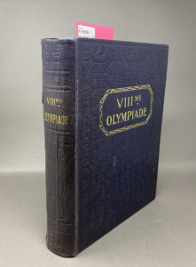 LES JEUX DE LA VIIème OLYMPIADE, Comité Olympique Français, Paris 1924, rapport officiel. — Grand in-folio, reliure en percaline bleu nuit titré doré sur le premier plat.