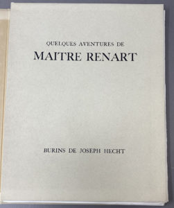 HECHT (Joseph). — Quelques Aventures de Maître Renart. — Paris, Michel de Romilly, 1950. — In-4, en feuilles, non rogné, chemise en étui de l'éditeur. — Édition illustrée de 12 gravures au burin en noir de Joseph Hecht.