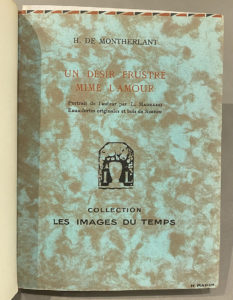 MONTHERLANT, Un désir frustré mime l'amour, comprenant cinq eaux fortes originales et bois de Siméon, Portrait de l'auteur en frontispice, Collection les images du temps, aux éditions Lapina, 1928, in-8
