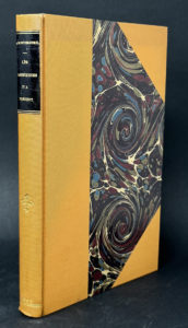 Reliure demi-toile et papier marbré, pièce de titre sur le dos en cuir noir titrée à chaud.