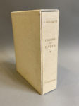 Dans son double emboîtage beige à l'imitation du lézard, le dos frappé à chaud du titre, des noms de l'auteur et de l'illustrateur, ainsi que d'une fleur de lys. Emboîtage insolé.