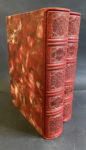 Emboîtages habillés de papier marbré, la cuve bordée de cuir.