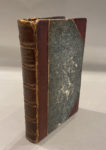Reliure demi-cuir à coin, dos à nerfs et filets dorés (accidents en haut et en bas du dos), coins émoussés.