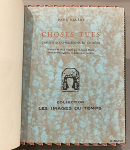 VALERY Paul, Choses tues, cahier d'impressions et d'idées, comprenant quartre eaux fortes originales et bois de l'auteur, nombreuses vignettes, portrait de l'auteur en frontispice, un facsimilé des notes de l'auteur en dépliant, Collection les...