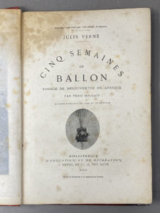 VERNES Jules, Cinq semaines en ballon, Voyage dedécouverte en Afrique par trois anglais, illustrations par M. Riou et de Montaut, Bibliothèque d'éducation et de récréation, J. Hetzel & Cie, Paris, In-4